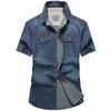Vintage πλυμένα τζιν πουκάμισα Ανδρικά Slim casual κοντά μανίκια Ανδρικά ρούχα Τζιν πουκάμισο Καλοκαιρινό ανδρικό πουκάμισο