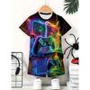 Boy's Vibrant Neon Game Controller 3D Printed Casual Clothing - Short Sleeve T-Shirt and Shorts Set