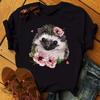 Funny Hedgehog Print T Shirt Women Short Sleeve O Neck Loose Women Tshirt Ladies Summer Tee Shirt Tops Clothes