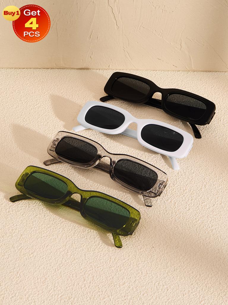 4PCS Rectangular Frame Women Sunglasses Daily Life For Men Vacation Outfits Fashion Glasses.