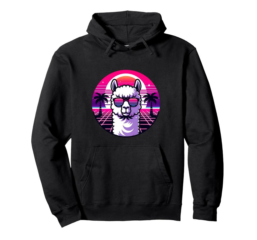 Cool Alpaca Retro Neon Hoodie with Sunglasses