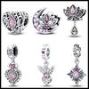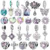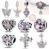 Ασήμι 925 Κλασικά Μωβ Ρετρό Σχήμα Καρδιάς Λωτός Άγγελος Σχέδιο Κρεμαστά Στολίδια Χάντρες Ταιριάζει σε 3mm Original Βραχιόλι DIY Κοσμήματα Δώρο