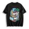 Men's Cute Dinosaur Print Loose T-Shirt, Casual Stretch Tees, Summer