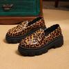 Γυναικεία Παπούτσια Μεγάλου Μεγέθους Χαμηλά με Λεοπάρ Σχέδιο Βρετανικού Στυλ Χοντρόσολα Slip-on Δερμάτινα Λόφερ Εξωτερικού Χώρου Άνετα Casual Παπούτσια