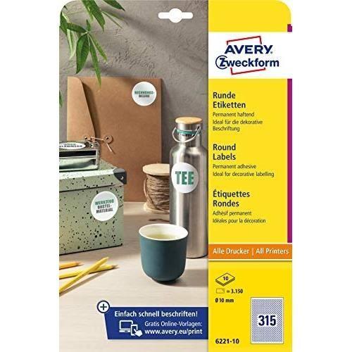 Étiquettes rondes - avery zweckform - 6221-10 - 10 mm - 3 150 pastilles - blanc
