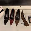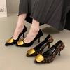 Μεταλλική τετράγωνη αγκράφα μυτερά μονόπατα παπούτσια γυναικεία 2025 άνοιξη και φθινόπωρο νέα λεπτό τακούνι λεοπάρ τύπου ταμπεραμέντο βασιλική αδελφή μόδα ψηλοτάκουνα