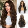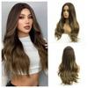 Μακριές καφέ Ombre συνθετικές περούκες για γυναίκες Φυσικά μαλλιά κυματιστές περούκες μεσαίου μέρους Γυναικεία περούκα Cosplay ανθεκτικές στη θερμότητα περούκες από ίνες