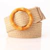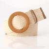 Women's Wide Round Buckle Elastic Belt - Cotton & Linen, Straw Style, Mori Girl Fashion.