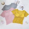 This stylish t-shirt is crafted from a soft, breathable cotton material, ensuring comfort throughout the day. The design features a flattering high waist and slim fit that beautifully accentuates your figure. Its square neckline adds a touch of elegance, while the built-in chest pad provides extra support and shape. With short sleeves, this versatile piece is perfect for both casual and semi-formal occasions.