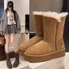 Νέες Χειμερινές Μπότες Χιονιού Γυναικείες Μπότες Μικρού Μήκους με Ενσωματωμένη Γούνα και Χοντρή Σόλα, Αντιολισθητικές και Ζεστές Βαμβακερές Μπότες