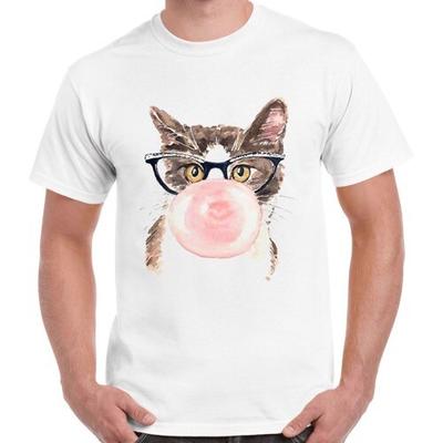 230 Gsm 100% Cotton Cat With Gum Art T Shirt Top Design Unisex Ladies Mens Tee Retro Fashion Vintage Shirt S814