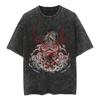 This men's t-shirt offers a casual and stylish look with its anime-inspired print and loose-fit design. Crafted from soft cotton, it ensures comfort and breathability for everyday wear. The shirt features a round neckline and distinctive ripped and washed details, adding a trendy touch to your wardrobe. Perfect for fans of anime or anyone looking to make a fashion statement, this t-shirt combines unique design with relaxed comfort.