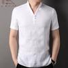 Ανδρικό Μπλουζάκι με V Λαιμόκοψη, Τσαλακωμένο Λινό, Κοντομάνικο, Κουμπωτό