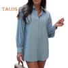Παρουσιάζουμε το κομψό τζιν πουκάμισο, με σχέδιο πέτου και μανίκια φανάρι για μια μοντέρνα εμφάνιση. Αυτό το μονόπετο πουκάμισο είναι διακοσμημένο με λεπτομέρειες τσέπης στο στήθος, προσθέτοντας μια πινελιά γοητείας..