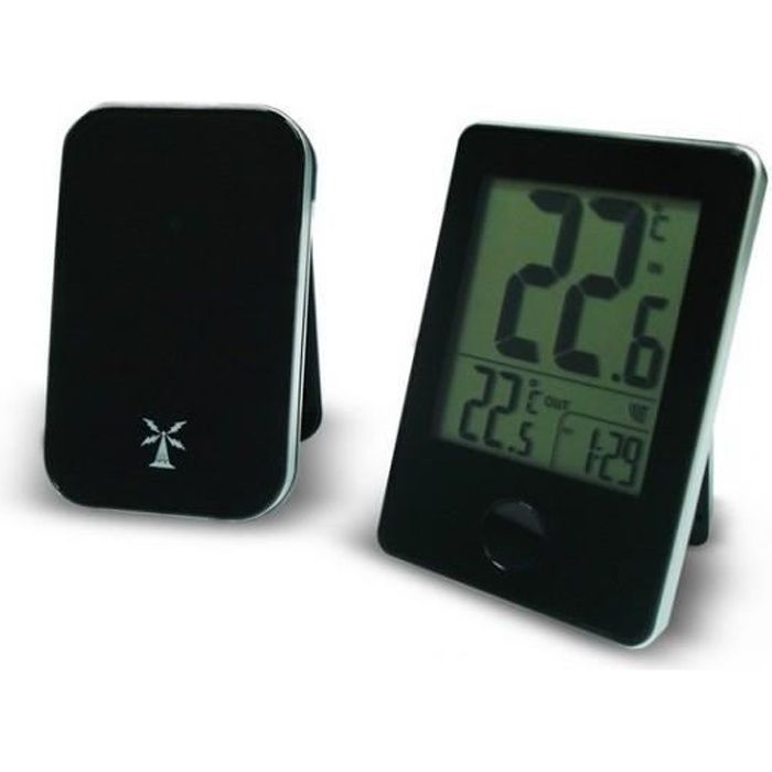 Thermomètre sans fil noir otio 936066 - affichage heure et température - intérieur/extérieur