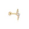 14K Gold Wind Single Row Straight Diamond-Set Puncture Internal Thread Flat Bottom 18G Earbone Stud Gold Earrings