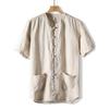 Ανδρικό Λινό Πουκάμισο Κοντομάνικο Κινέζικου Στυλ Ανδρικό Καλοκαιρινό Λεπτό Καθημερινό Ρετρό Βαμβακερό και Λινό Πουλόβερ Πουκάμισο με Όρθιο Γιακά