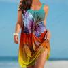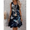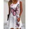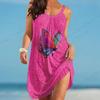 Νέο Μόδα Γυναικείο Χαβανέζικο Φόρεμα Παραλίας Κομψό Πολύχρωμο 3D Πριτ Πεταλούδας Καλοκαιρινό Μίντι με Λεπτές Τιράντες Μποέμ Αμάνικο για Πάρτι