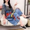 Women's Summer Short Sleeve Loose Cartoon Print Dress Fake Two Striped Suspenders T-shirt Dress