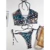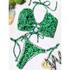 Sexy High Cut Leopard Bikini Women Thong Swimwear Female Swimsuit Two-pieces Bikini set Lace Up Bather Bathing Suit Swim Lady