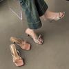Fairy style French cat and sandals, summer word with bow, square head, thin heel, elegant high-heeled slippers, female