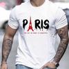 Men's Summer Eiffel Tower Printed 100% Cotton Large Loose Round Neck Short Sleeve T-shirt Top fashion casual