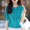 Women's Fashion Casual Solid Color Print Summer Spring Short Sleeve O-Neck Knitted Short Sleeves