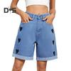 Καλοκαιρινά Γυναικεία Τζιν Σορτς Μήκους Μέχρι το Γόνατο Με Μέση που Φτάνει Μέχρι τη Μέση Ελαστικά Καθημερινά Φαρδιά Ίσια Πόδια Ξεβαμμένα με Μανσέτες Τζιν Σορτς Παντελόνια με Τσέπες