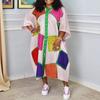 Γυναικεία Μόδα Άνοιξη Φθινόπωρο μονόχρωμη στάμπα με μακριά μανίκια V-λαιμόκοψη, χαλαρή μέση casual φορέματα