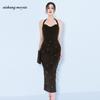 2024 Autumn Sexy Halter Backless Feather-Spliced Beaded Mid-Length Dress