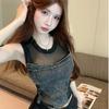 Γυναικείο τζιν τζιν φανελάκι με σχέδιο πεταλούδας χωρίς πλάτη