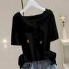 Κουκούλα Μπλουζάκι Κοντομάνικο Γυναικείο Χαλαρό Στενό Πουλόβερ T-Shirt για Άνοιξη Καλοκαίρι Εύκολο Συνδυασμό Καλύπτει την Κοιλιά Πουλόβερ Τοπ