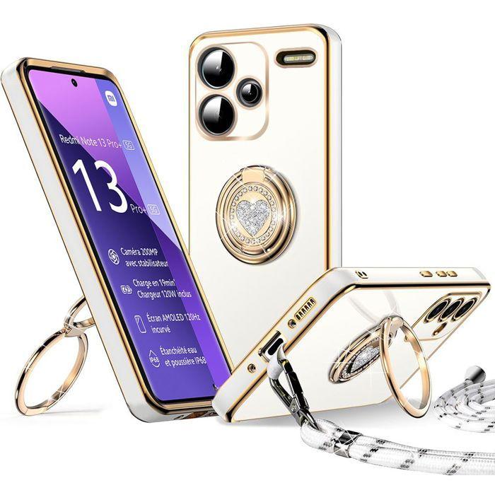 Coque - E.F.CONNECTION - Pour Xiaomi Redmi Note 13 Pro Plus 5G - Silicone - Anneau rotatif - Cordon inclus