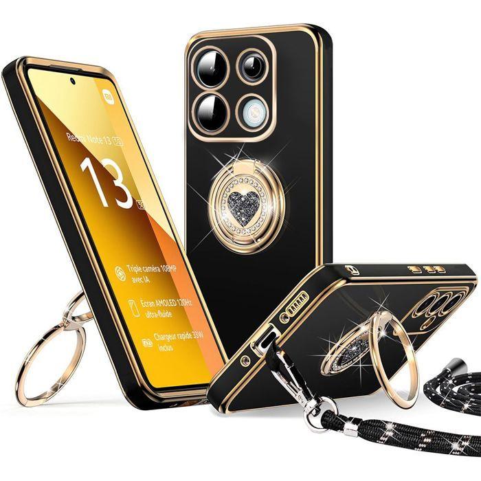 Coque Etui - E.F.CONNECTION - Pour Xiaomi Redmi Note 13 5G - Silicone souple - Antichoc - Avec anneau et cordon