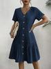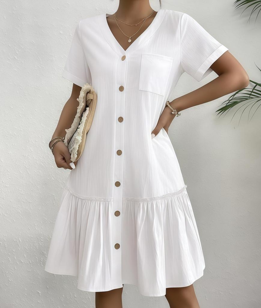Γυναικείο Καλοκαιρινό Άνετο Φόρεμα από Βαμβάκι Λινό με Βολάν στο Τελείωμα, Καθημερινό Φόρεμα Μπλούζα Καρντιγκάν με Κοντό Μανίκι