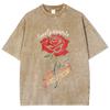 Romantic Rose-Print Women's T-Shirt Washed Fashionable Short-Sleeved Statement Features Oversized Tee Basics