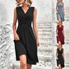 Summer Women's Dresses Sleeveless V-neck Midi Dresses Female Dress Solid Dress Party Dresses