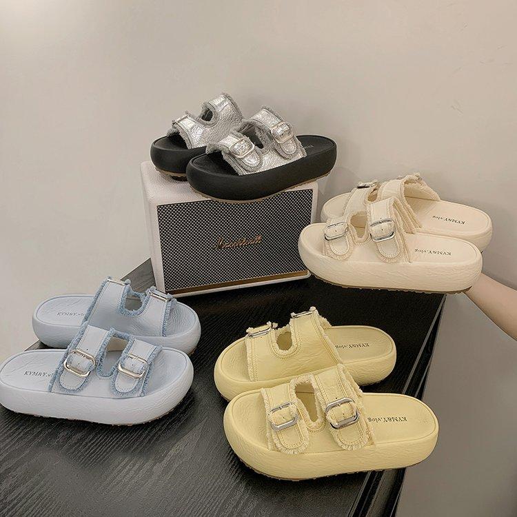 Summer belt buckle fashionable thick-bottomed slippers female 2025 new outer wear fairy wind soft bottom seaside cool slippers