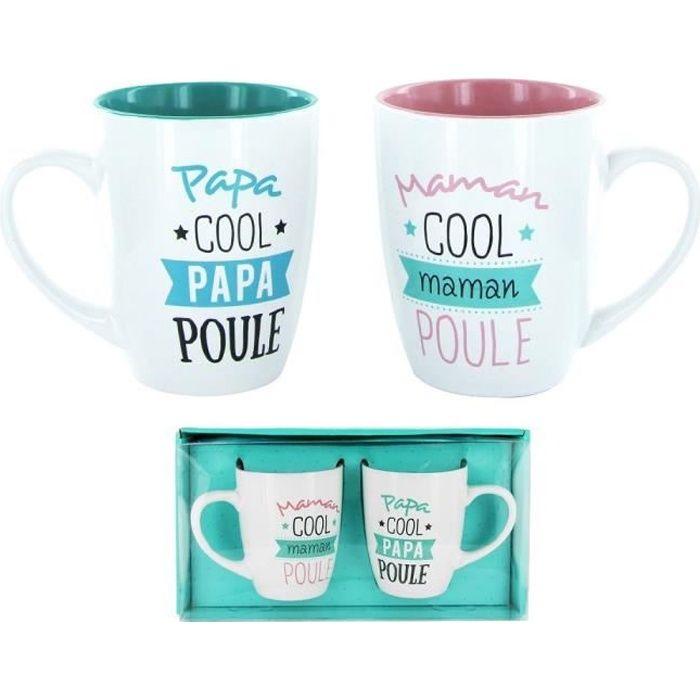 Coffret de 2 mug papa et maman poule - tasse cadeau fête anniversaire - 627