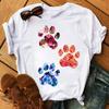 Women T Shirt Cartoon Tops Colorful Heart Dog Paw Print T-shirt Female Summer T-shirt 90s Girls Short Sleeve Tee Black T-shirts