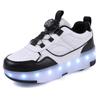 Kid's Rotating Button Wear Quick Four Wheel Running Shoes with Wheels Sports Shoes USB Charging LED Light Sports Shoes Girls Roller Skates