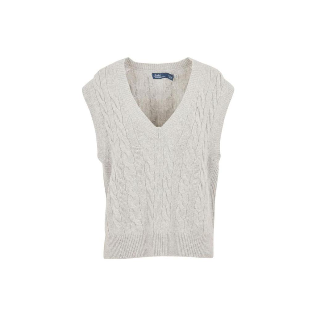 Polo Ralph Lauren SS23 Solid Color V-Neck Sleeveless Knit Vest Women vests Light-Gray 211910425-001
