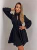 V-Neck Solid Color Hollow Out Dress for Women Spring Summer Long Sleeves A-Line Dress Zipper Office Ladies Dresses