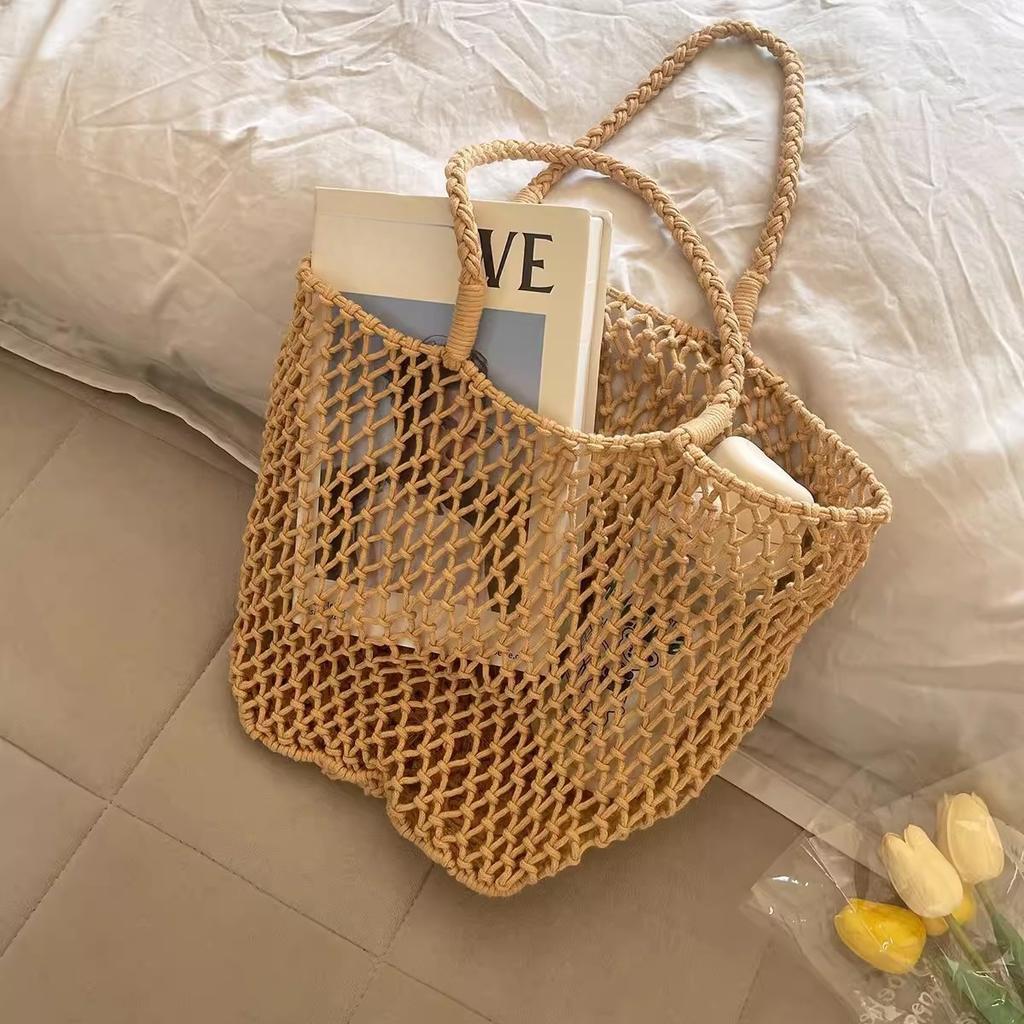 Shoulder Bag, Vacation, Cotton Rope Woven Women's Bag, Lazy, Summer, Hollowed Out, Large Capacity, Hand-held Beach Bag