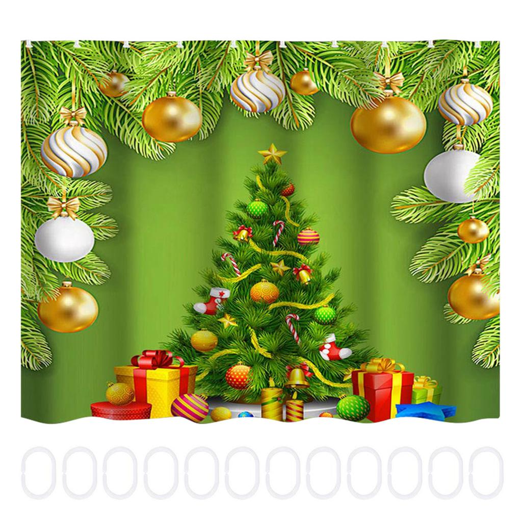 150x180cm Χριστουγεννιάτικο Μοτίβο Αδιάβροχη Κουρτίνα Μπάνιου με Άγκιστρα Διακόσμηση Μπάνιου