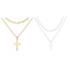 Cross Necklace Titanium Steel Simple Double Layers Gloosy Comfort Sweater Necklace for Belief Gold
