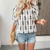 Women's Summer New Sweet Simple Bubble Sleeve Square Collar Bow Line Shirt