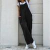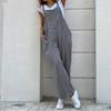 Summer Solid Color Jumpsuit Women Wide Leg Pants Adjustable Strap Pocket Loose Cotton Linen Overalls