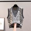 V-Neck Knitted Vest Women Zebra Pattern Sleeveless Sweaters Waistcoat for Outwear Spring Autumn
