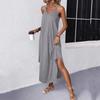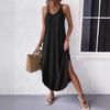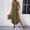 Γυναικεία Φορέματα με Καμπύλο Στρίφωμα, Ρευστά, Καλοκαιρινά, Αμάνικα, με V Λαιμόκοψη, Άνετη Γραμμή, Μακρύ Φόρεμα, με Τιράντες, Μονόχρωμα, Καθημερινά Φορέματα, Νέα